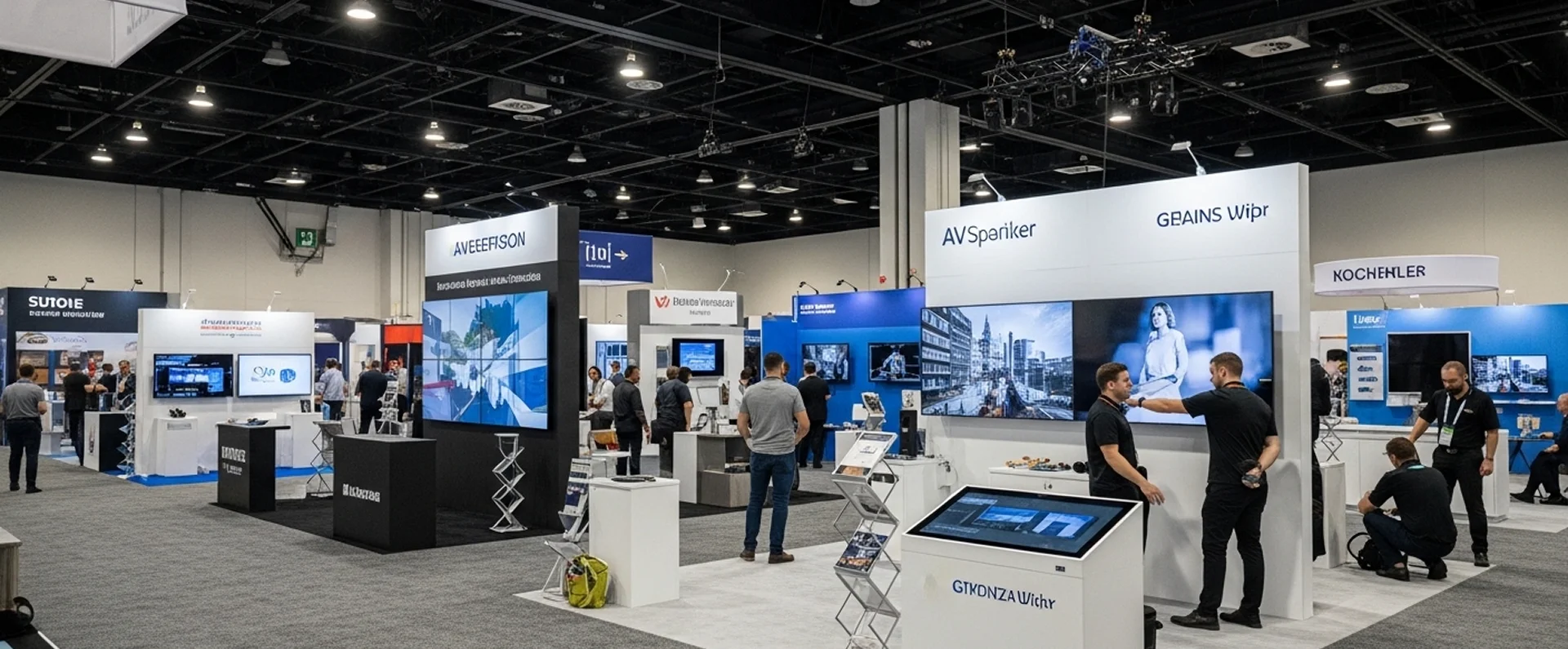 AV support services for exhibit houses and general contractors. LED walls, displays, audio, installation crews, and technical management nationwide.